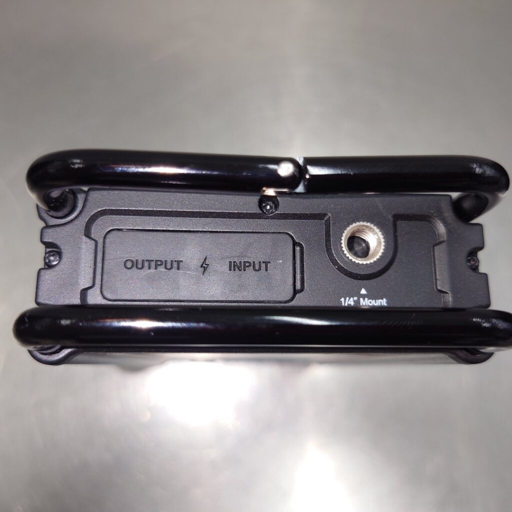 充電口の横に1/4ネジマウントがある為、市販の三脚やロングスタンドを取り付けての使用もできます。