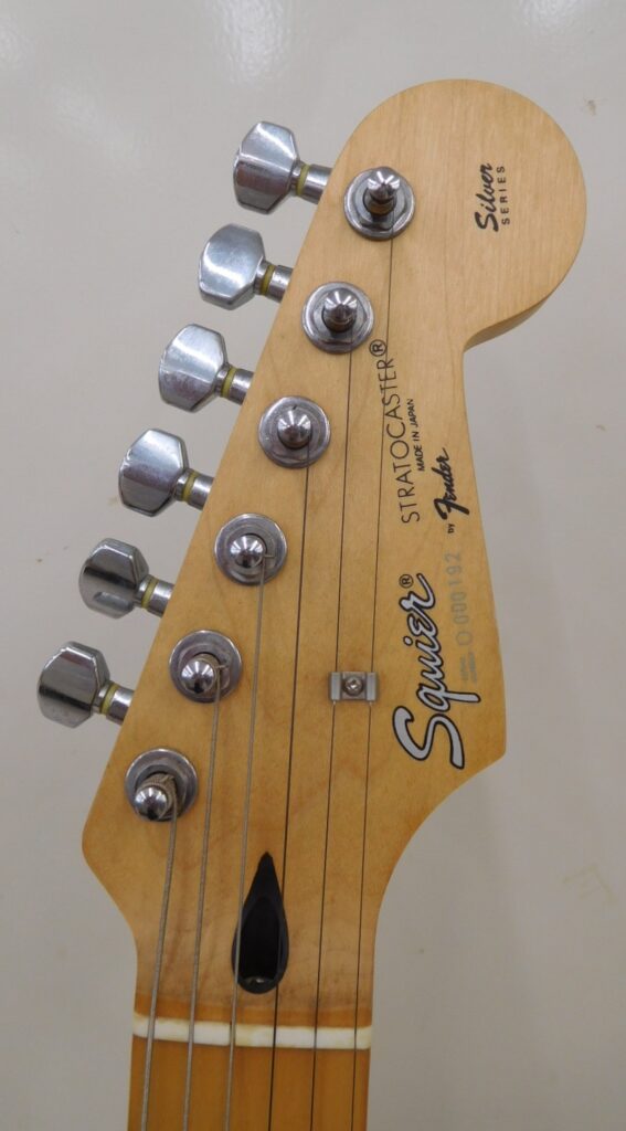1990年代前半に日本で製造されたスクワイアのシルバーシリーズに属するストラトキャスターで、