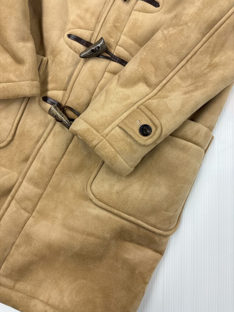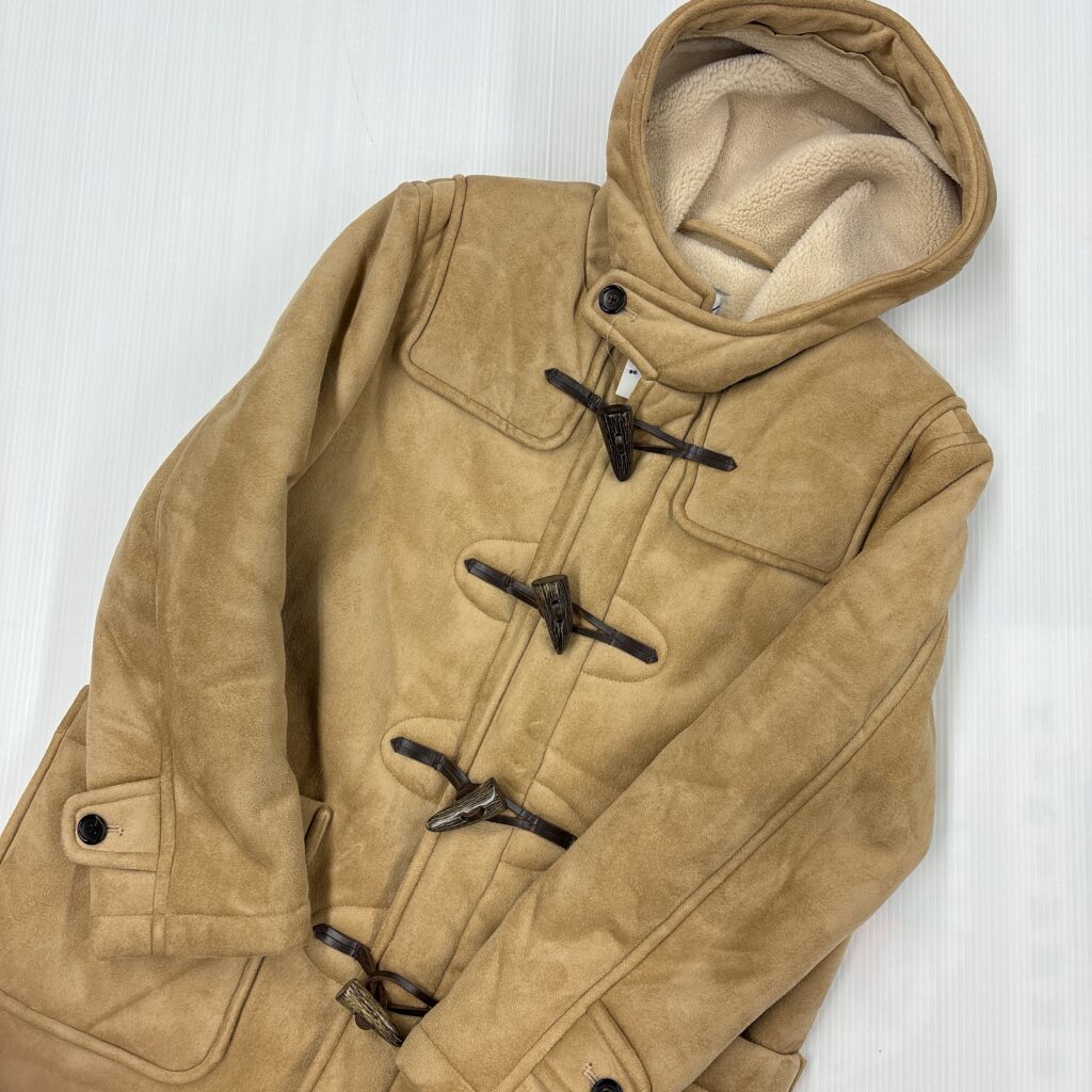 上質なフェイクムートンの柔らかさと、クラシックなダッフルデザインが魅力の一着。見た目のボリュームに反して軽く、暖かさも申し分ないため、冬の定番アウターとして人気のモデルです。トグルのアクセントや、ふんわりとした質感がコーディネートを上品に仕上げてくれます。