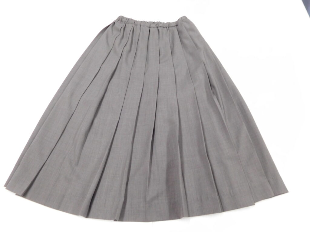 ウールのような風合いを持つポリエステル素材(ウーステッド)を使用したマキシ丈のプリーツスカートです。